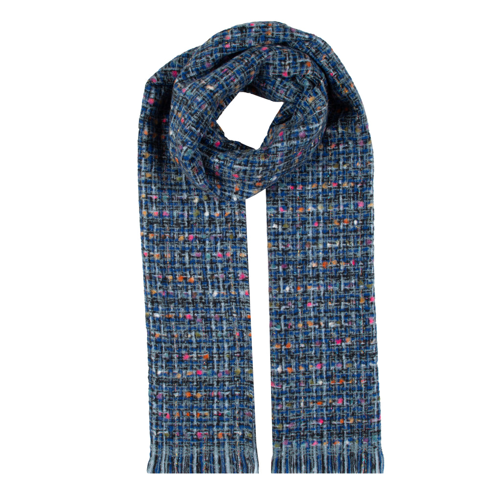 Dents Woven Scarf With Metallic Yarn And Fringe Edges - Navy