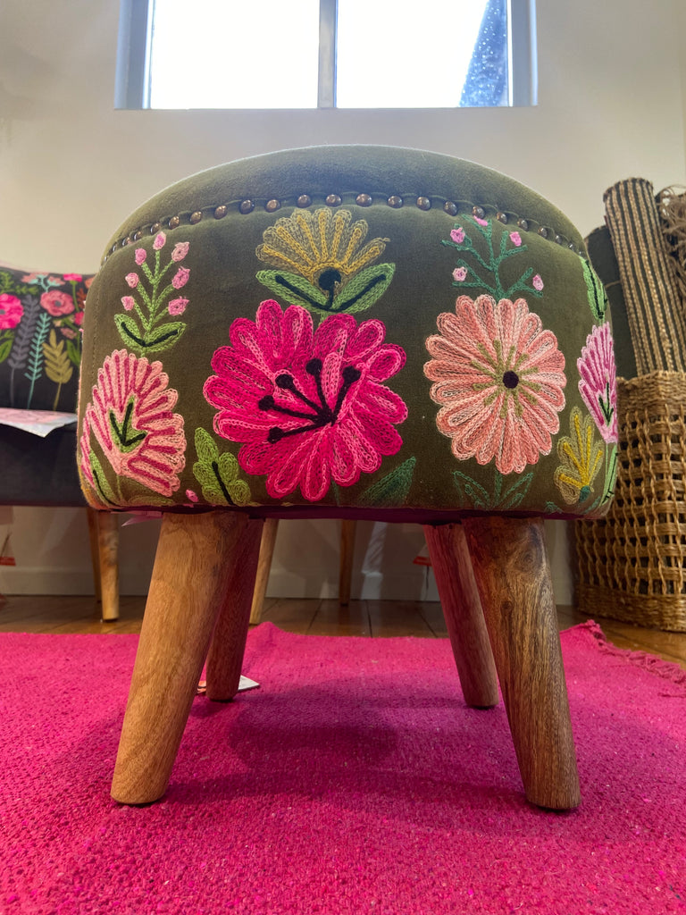 Aquarelle Leigh Stool Ensley Velvet - Moss Green