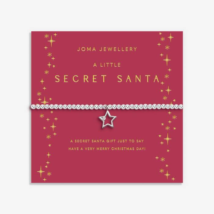 Capture every magical moment with your loved ones this festive season with our twinkling Christmas A Little Bracelets! Made to last and be loved for a lifetime, our Christmas A Little 'Secret Santa' Bracelet In Silver Plating is threaded with our classic silver-plated beads and decorated with a pretty star charm to celebrate the magic of the season. Wrapped around a shimmering starburst-print card and framed by a sweet poem, it's sure to make a wonderful stocking filler or under-the-tree treat.