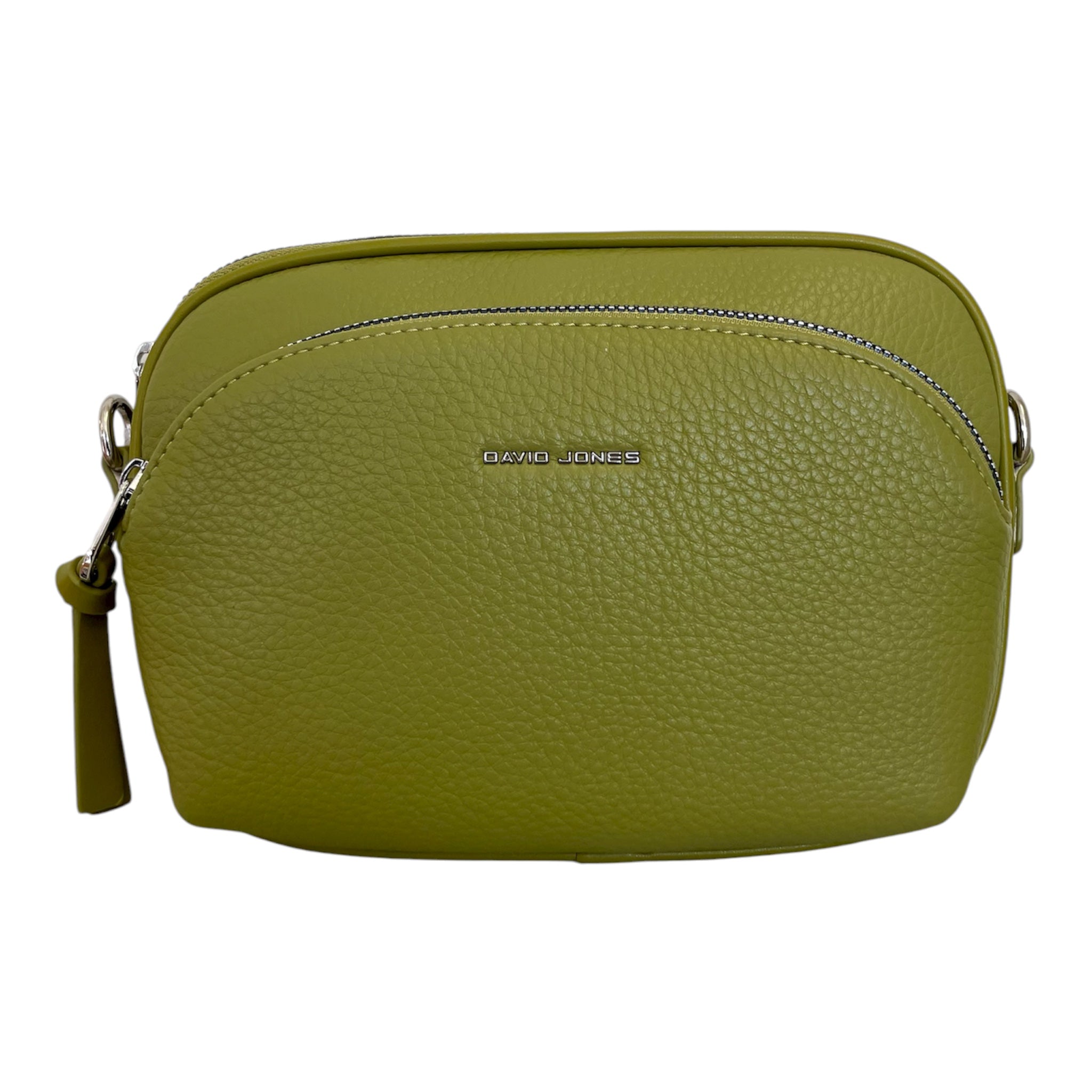 Explore the David Jones Crossbody Bag in a lively Dark Lime shade. This playful handbag offers zip compartments on the front and back, plus a main zip closure for easy access. The strap is adjustable and detachable, perfect for every mood. Crafted from soft faux leather, it measures 20 x 17 x 7 cm—ideal for carrying your essentials in style.