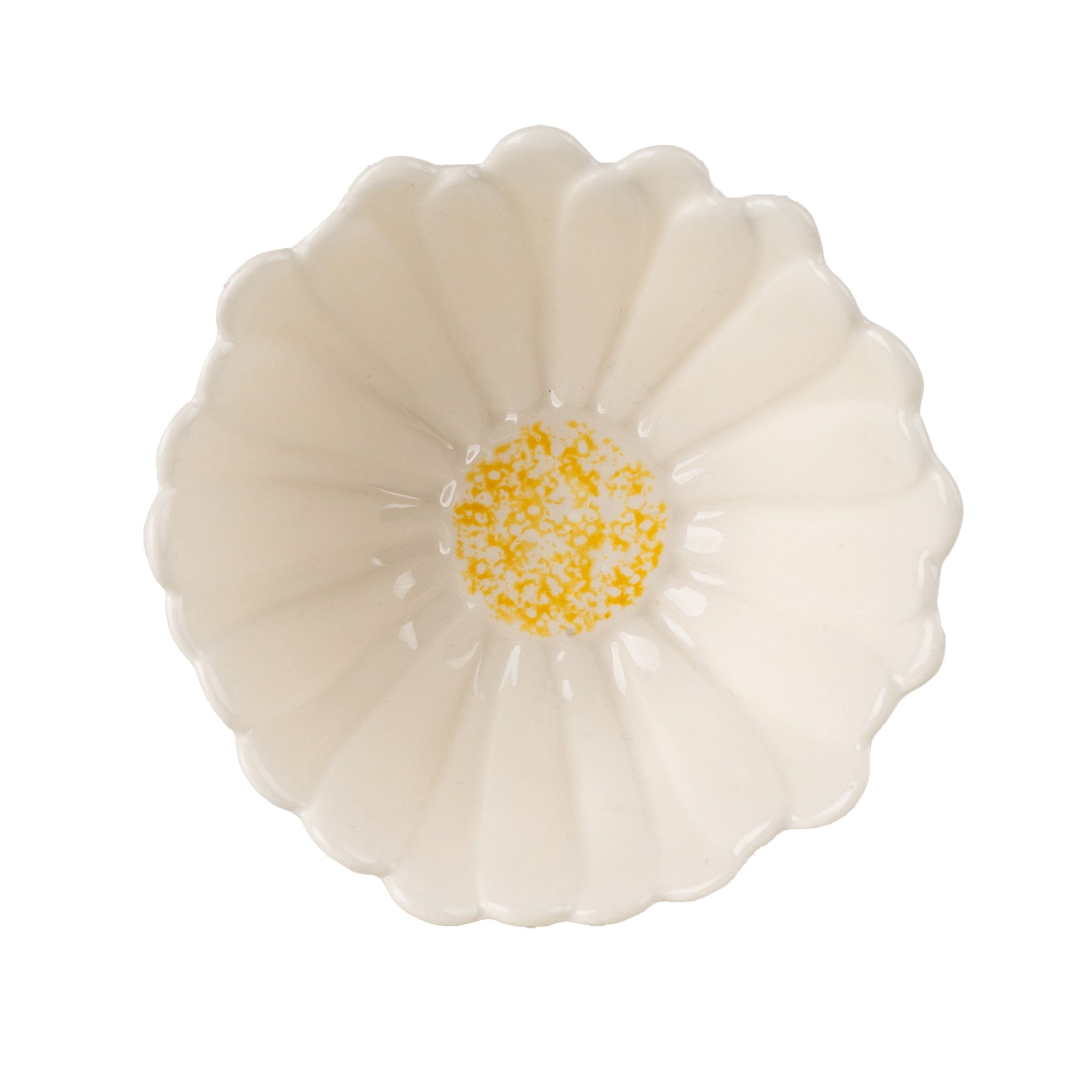 The 13cm Small Daisy Bowl epitomises charm with its delightful daisy design, presenting a flawless blend of beauty and functionality. Crafted from high-quality ceramic, this elegant bowl showcases a radiant white glaze complemented by a sunny yellow centre, evoking the cheerful essence of a blooming daisy. Perfectly sized for serving sides or displaying as a decorative piece, its scalloped edges and delicate details make it a lovely addition to any table setting or home décor collection. Ideal for those who appreciate the subtle beauty of floral designs, this bowl ensures a touch of spring is never out of reach.