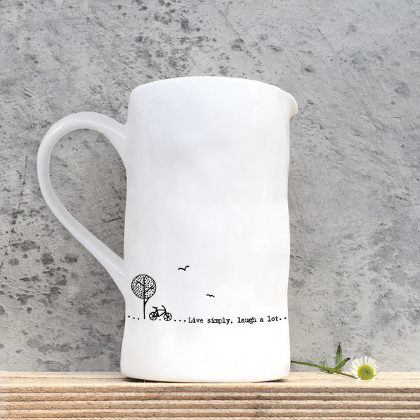 Add a cheerful touch to your kitchen with this porcelain jug, measuring 10 x 11.5 x 7cm. Featuring the playful message "Live Simply Laugh A Lot," it’s perfect for serving drinks while spreading positivity and smiles.