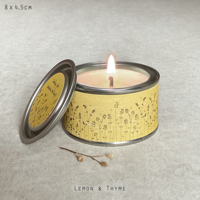 Brighten someone's day with this cheerful tin candle, infused with a delightful blend of zesty lemon and aromatic thyme. Perfect for gifting or treating yourself, this little ray of sunshine delivers up to 14 hours of warm, inviting fragrance that fills your space with feel-good vibes. A thoughtful way to send comfort and joy to those you care about.