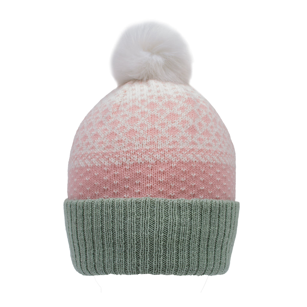 Dents 3 Colour Fair Isle Knitted Hat - Powder Pink/Mint