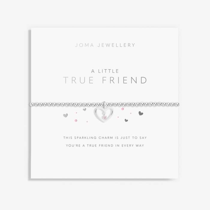 “This sparkling charm is just to say, you're a true friend in every way” They’ve been there for you through thick and thin, and our A Little ‘True Friend’ Bracelet is the sweetest way to say a big (and very thoughtful!) ‘thank you’. Designed to fit every wrist, this silver-plated stretch bracelet features a heart-shaped charm that has a sparkling diamante sitting in the middle of it - we promise they’ll adore it. To ensure the perfect gifting moment, every order comes with a free Personalised Gift Bag, so you can gift pretty every time!
