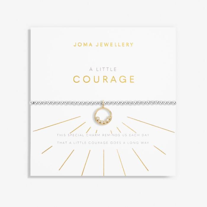 Say hello to one of the new additions to our world-famous A Little Collection! Our A Little 'Courage' Bracelet in Silver Plating And Gold Plating features a captivating stretch design and an encrusted gold-plated hoop charm. Wrapped around one of our stylised cards and framed with a sweet sentiment, this piece is sure to make a standout gift and a wonderful addition to your loved one's Collection.