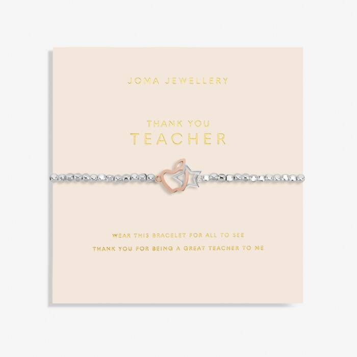 Discover our Forever Yours 'Thank You Teacher' Bracelet In Silver Plating And Rose Gold Plating. This adorable piece, which features a rose gold-plated and silver-plated charm and a hammered bead design, is the perfect token of love and thanks for the end of the school term. Complete with a pretty blush pink card which has been finished with a special sentiment and a sweet poem, it's guaranteed to brighten their day.