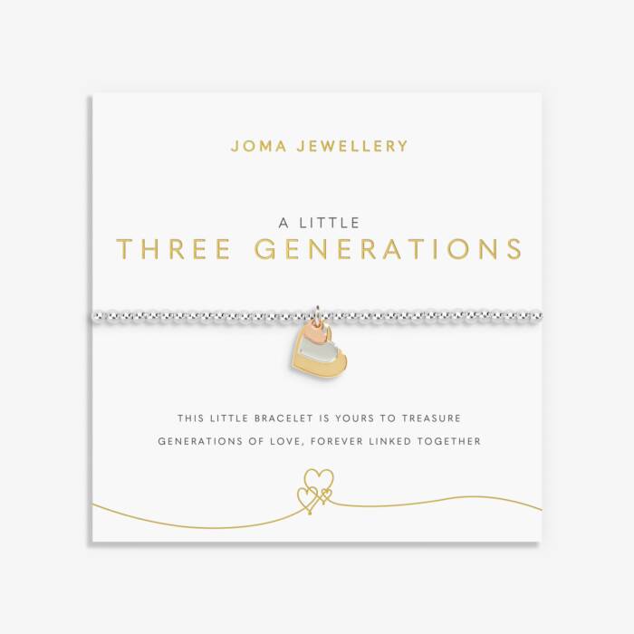 Celebrate life's treasured moments with those that mean the most with our ever-growing collection of A Littles. Featuring our signature beaded design that ensures a comfortable fit on any wrist and crowned with a trio of hearts to represent you and your family, our A Little 'Three Generations' Bracelet In Silver, Gold, And Rose Gold Plating comes carefully wrapped around a sentiment-stamped presentation card, ready to make the sweetest addition to any stack.