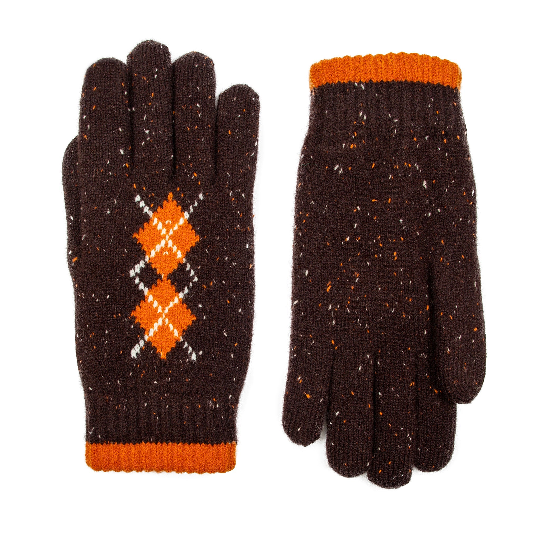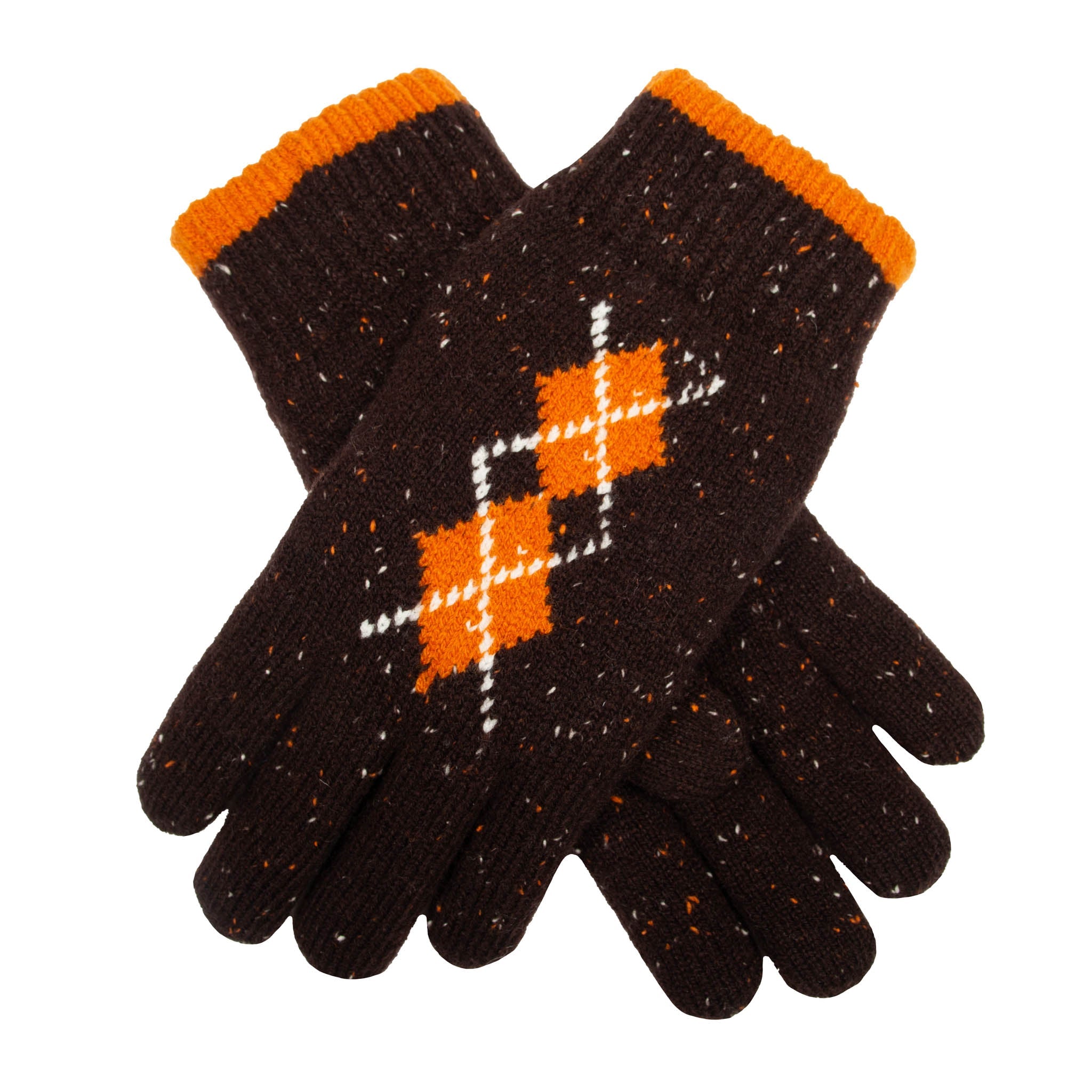 Dents Argyle Gloves With Marl Yarn - Chocolate/Pumpkin