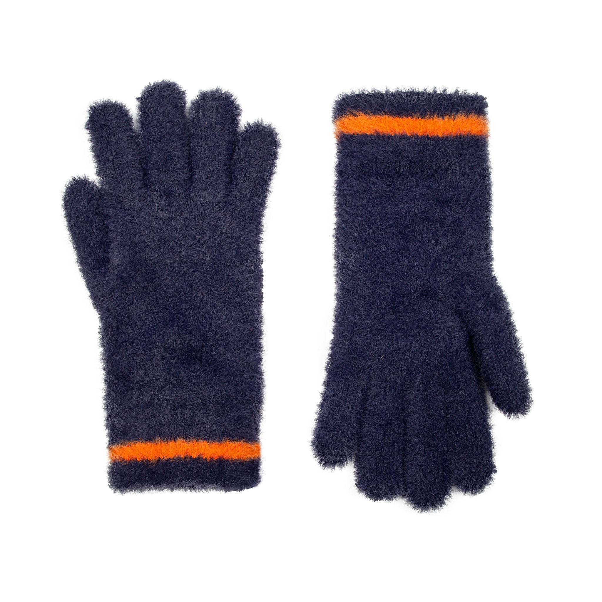 Dents Feather Yarn Knitted Gloves With Stripe - Navy/Pumpkin