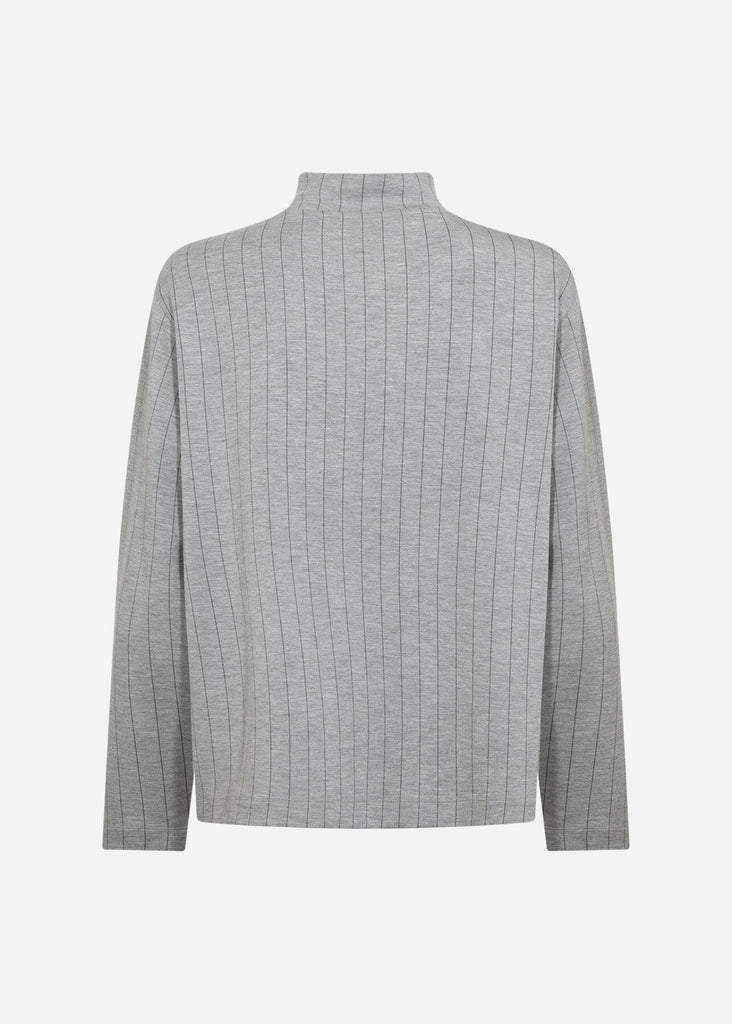 SC-VIVI 1 Blouse is crafted from 48% Modal, 48% Polyester, 4% Elastane. It features a mock neck, long sleeves, and a subtle pinstripe pattern. Pair it with tailored trousers or denim for different occasions.