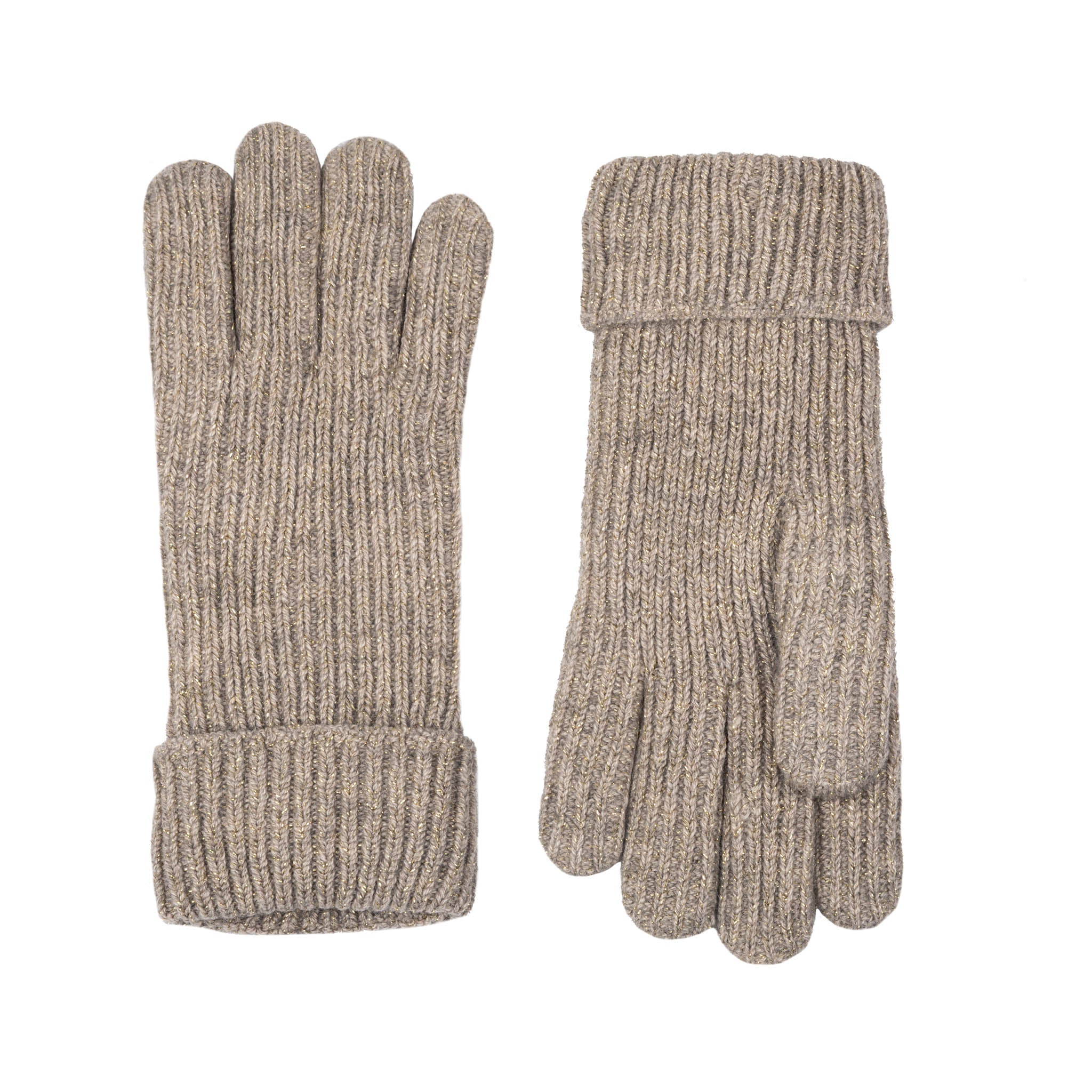 Dents Ribbed Knit Gloves With Metallic Yarn - Oatmeal