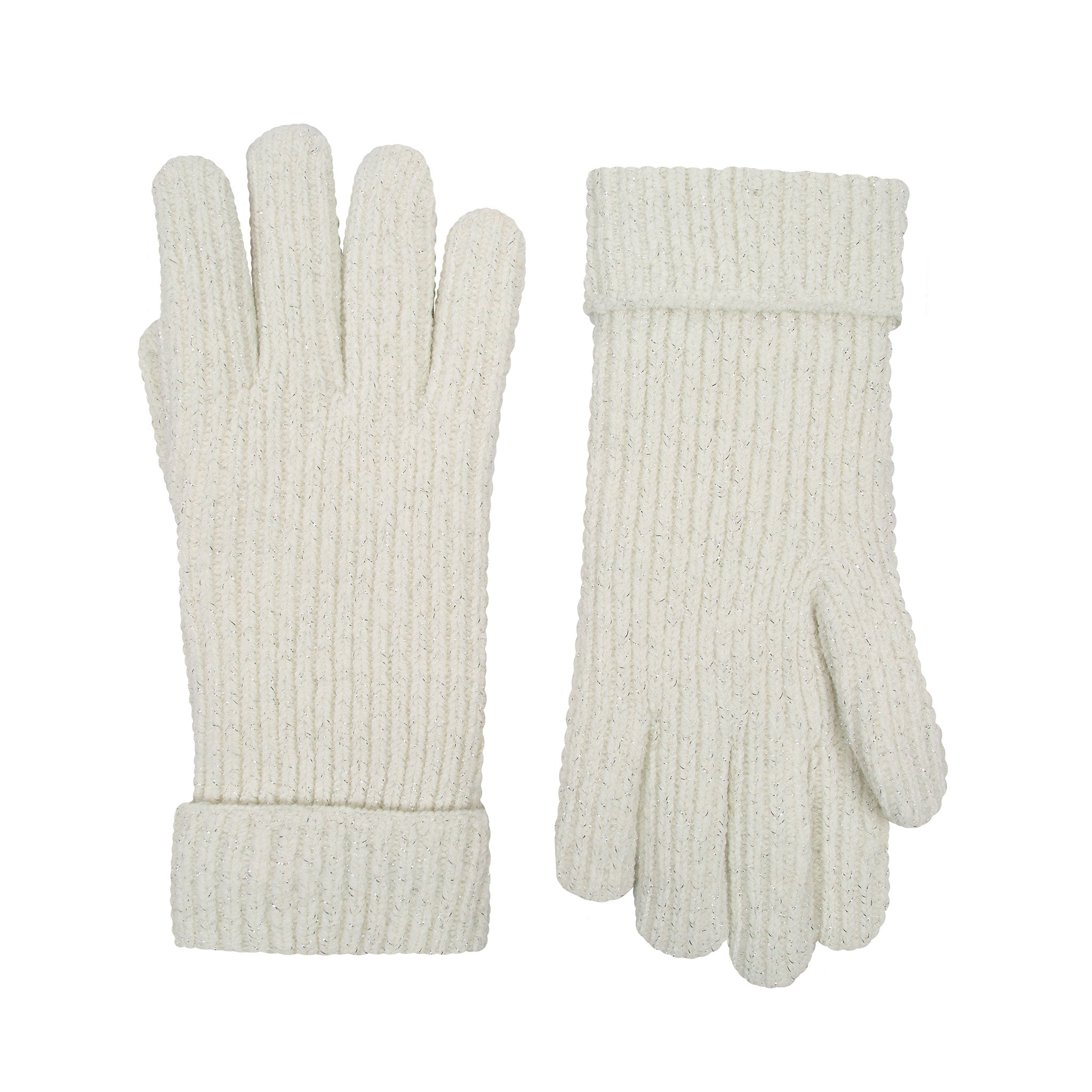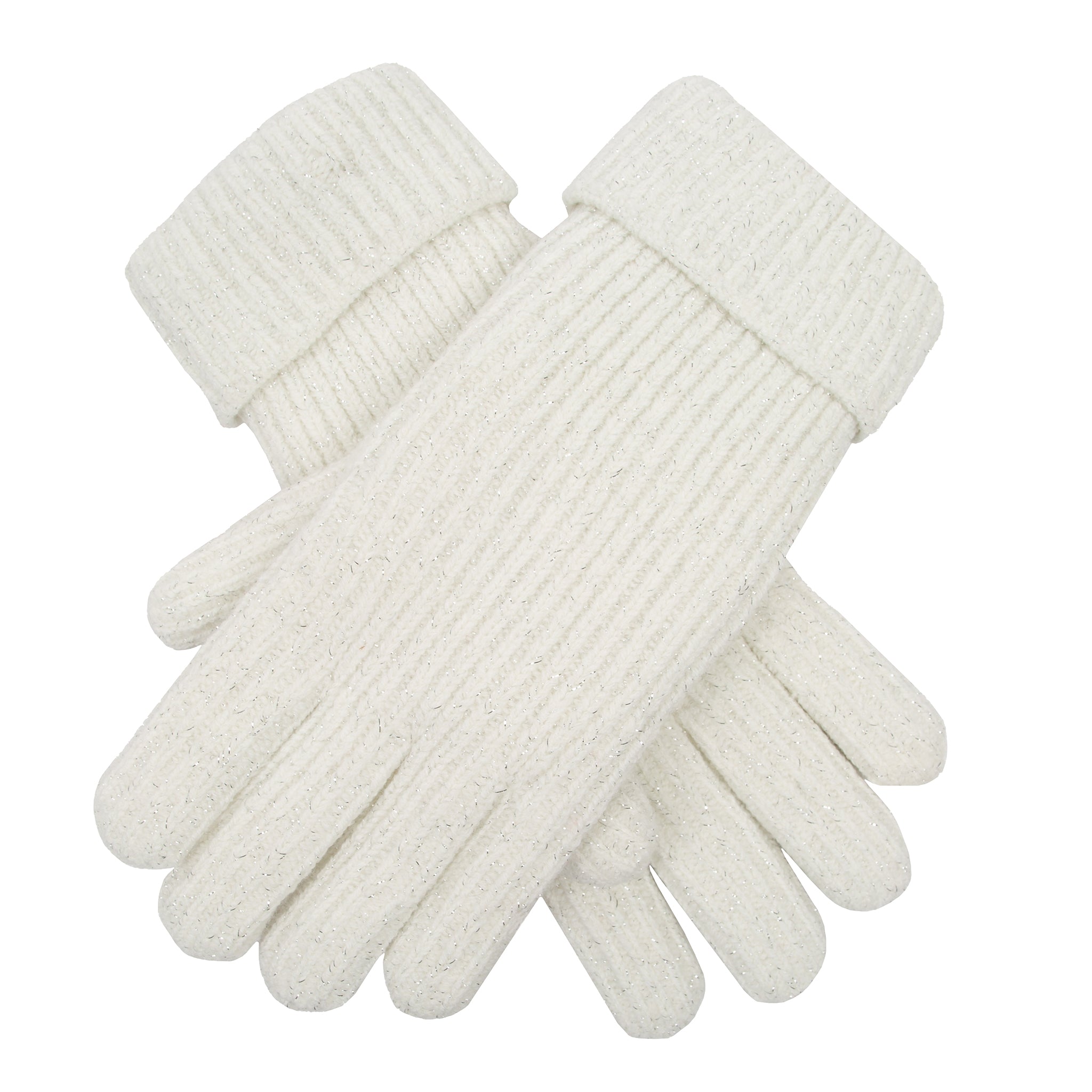 Dents Ribbed Knit Gloves With Metallic Yarn - Winter White