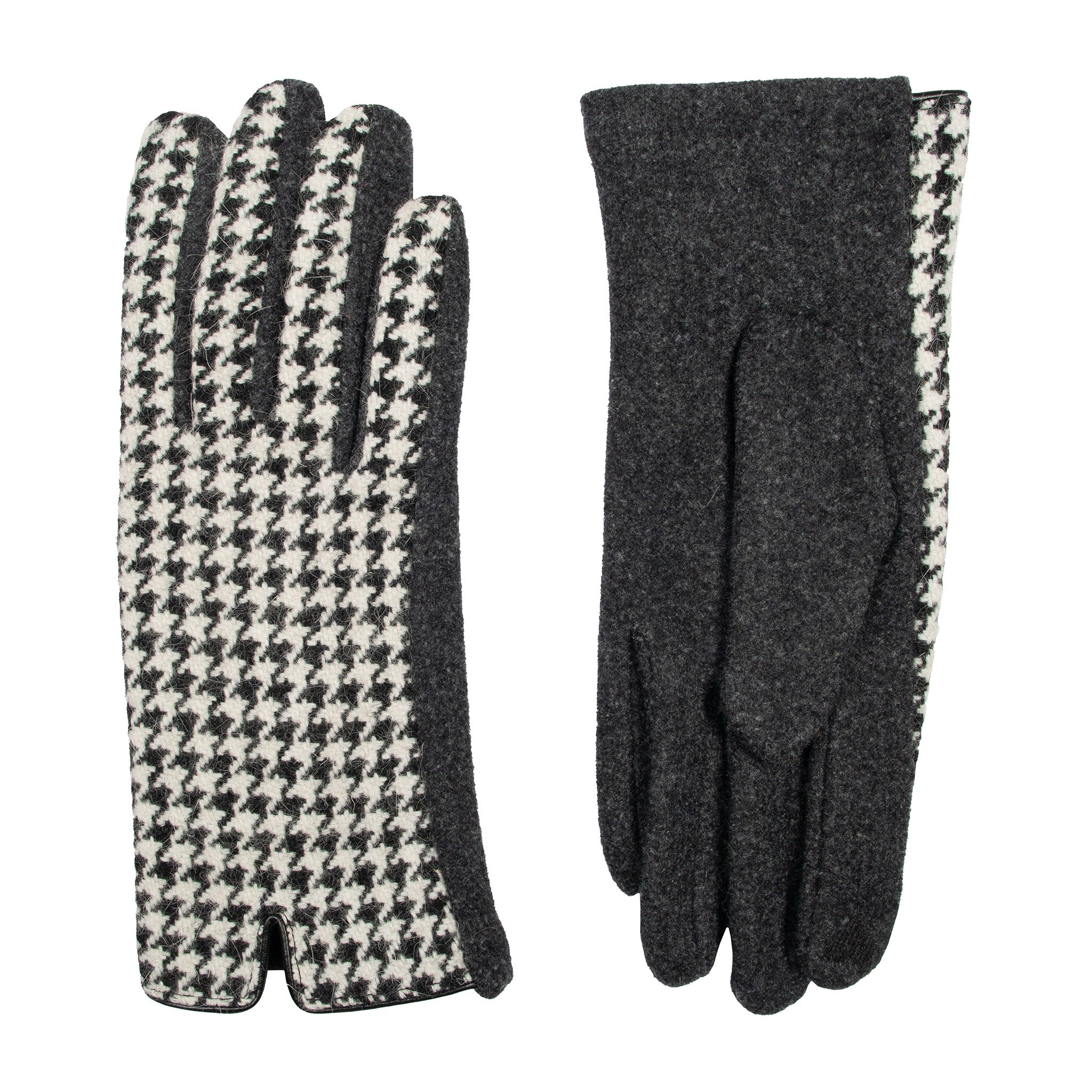 Up the elegance this season with our classic dogtooth print gloves - where heritage design meets contemporary convenience. The iconic dogtooth (or houndstooth) pattern brings a touch of vintage sophistication that never goes out of style. Crafted with a hint of spandex for a snug, comfortable fit, these fabric gloves offer back vents for added ease around the wrist and a welted leather cuff for durability and refinement. But it’s not just about looks - they also boast touchscreen technology in the index fingertip and thumb so you can stay connected without sacrificing warmth or elegance.