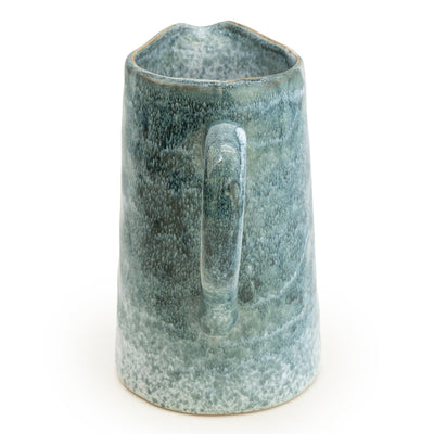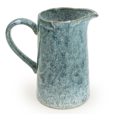 The Small Reactive Blue Glaze Jug, at a charming height of 17cm, is a delightful blend of functionality and artistic beauty. This piece is distinguished by its reactive blue glaze, giving it a vibrant, ocean-like appearance with swirling shades of blue that change subtly with the light. Each jug is unique, as the reactive glaze creates distinctive patterns, making it as much a work of art as it is a practical item. Its compact size and classic jug shape make it versatile for use as a vase for fresh flowers, a container for kitchen utensils, or simply as a decorative piece. Ideal for those who appreciate the unique charm of handcrafted ceramics, this jug adds a splash of colour and artisan flair to any space it graces.